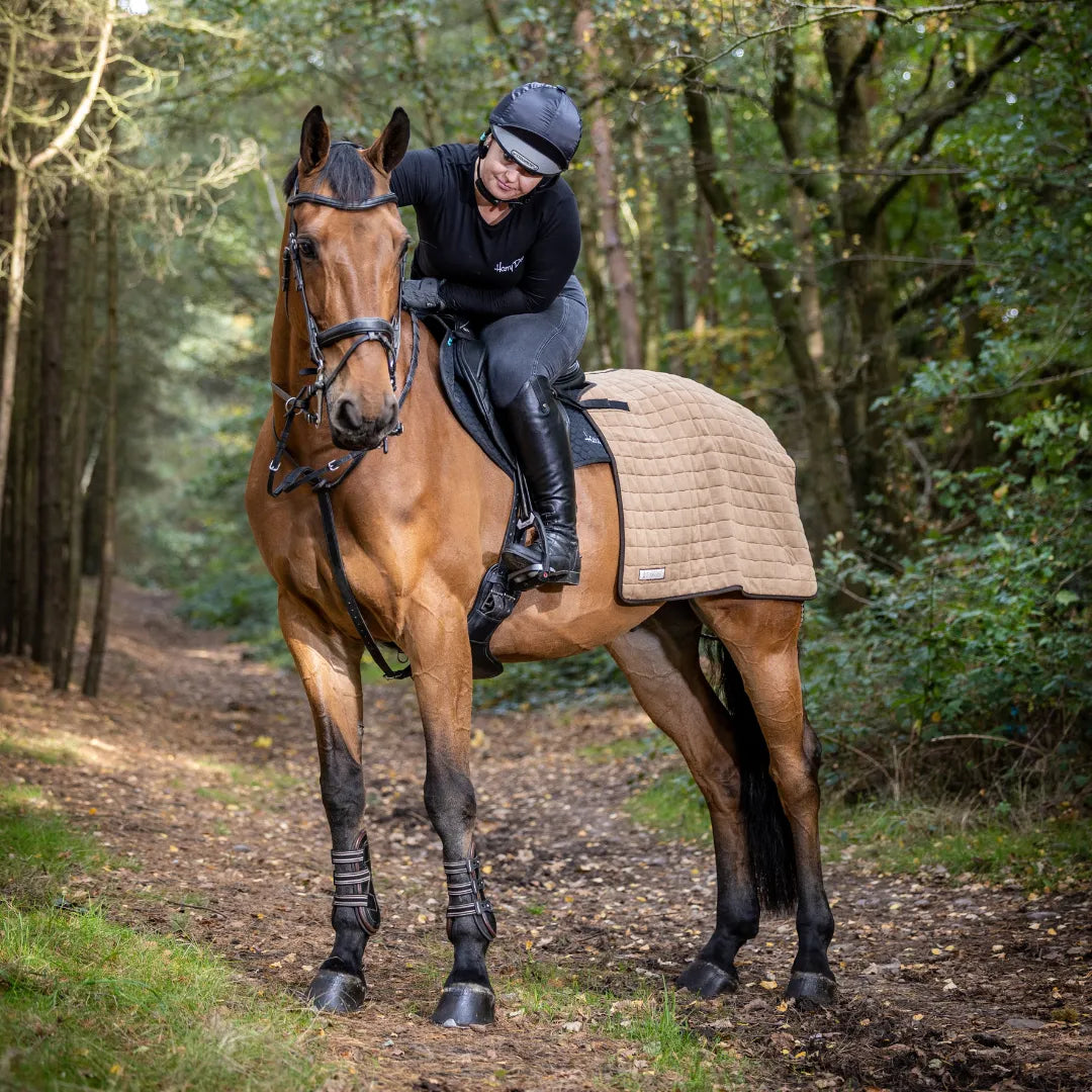 Adequately shaped to provide coverage of the quarters, the weighty material will also ensure it stays perfectly in place whilst riding your horse.